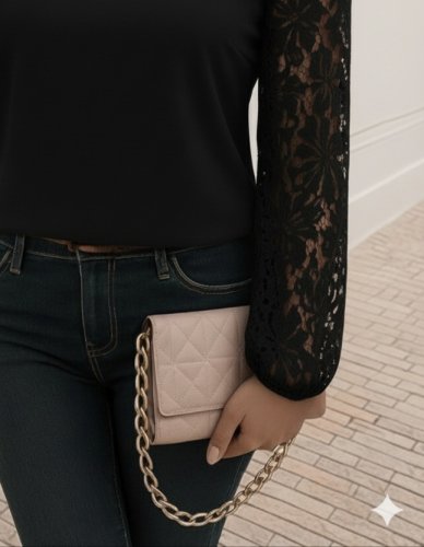 • Kadın uzun kollu asimetrik yakalı dantelli ithal krep bluz