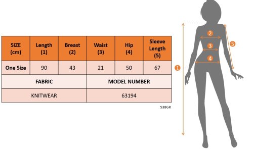 • Modelin Ölçüleri: Boy:165, Kilo:55, Göğüs:90, Bel:72, Kalça: 100